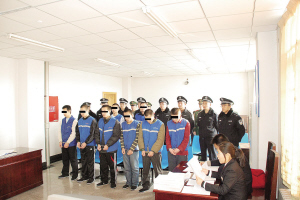 連環(huán)搶劫團(tuán)伙“帶頭大哥”很年輕,個(gè)體煙酒店和獨(dú)居老嫗成為受害者,紅橋區(qū)檢察院以搶劫罪、盜竊罪、掩飾隱瞞犯罪所得罪對(duì)該團(tuán)伙提起公訴。昨天上午,此案在紅橋區(qū)法院公開(kāi)審理,近20名法警和武警將該案8名被告人押解上庭。