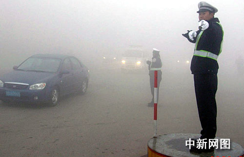 中新網(wǎng)新鄉(xiāng)11月26日電(記者吳揚(yáng) 通訊員牛國(guó)平)昨日一場(chǎng)入冬以來最大的濃霧突降中原大地,河南省新鄉(xiāng)市交巡警支隊(duì)及時(shí)啟動(dòng)惡劣天氣下的交通安全管理預(yù)案,全市千余名交警冒著濃濃大霧迅速出警,守護(hù)在市區(qū)和主干公路的大路口上,指揮和疏導(dǎo)了數(shù)萬輛過境機(jī)動(dòng)車輛安全通行。
