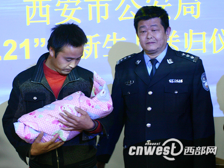 備受公眾關(guān)注的西安交大一附院丟失女嬰今天終于回到了父親嚴(yán)小紅的懷抱。今天(12月2日)下午西安市公安局專門舉行送歸儀式將女嬰交給他的父親嚴(yán)小紅,西安市公安局通過(guò)DNA鑒定,確定女嬰為嚴(yán)小紅和張?zhí)m芳的親生女兒。