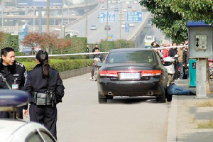 但據(jù)多名知情者說,這是一起持槍搶劫案。圍觀者中一名中年男子說,當(dāng)時他正好去銀行對面的超市買菜,突然聽到“嘭”的一聲巨響,以為發(fā)生了車禍,回頭一看,銀行門口這輛小車旁,一名男子已倒在地上。這名目擊者隨后看到,事發(fā)小車旁還留有彈殼。