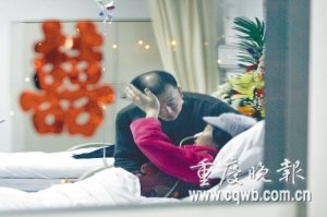 昨晚6點(diǎn)30分,重慶武警肝膽科病房,房里鋪上了紅地毯,醫(yī)生手捧鮮花,等待新人的到來(lái)。