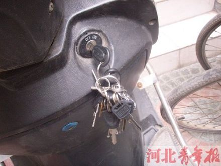 張先生大喊“抓賊”,結(jié)果對方扔下車便跑。張先生趕到車旁一看,發(fā)現(xiàn)正是自己的電動車,車電源鎖上還插著一大串鑰匙。