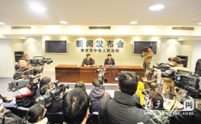 昨天上午10點40分,張明寶案宣判剛一結(jié)束,南京市中級人民法院就召開了新聞發(fā)布會。主管刑事審判的副院長吳文康作為新聞發(fā)言人回答了記者提問,包括央視在內(nèi)的數(shù)十家媒體參加了新聞發(fā)布會。發(fā)布會共進行了近半個小時。