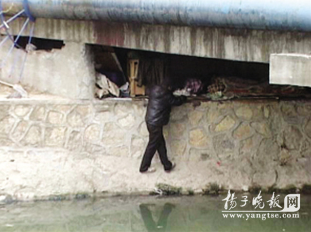 據(jù)了解,該落水男子是安徽人,在南京已經(jīng)好幾年了,平時靠打零工和收舊維持生活。記者在現(xiàn)場看到,他住的橋洞內(nèi)還住有其他民工,橋洞下塞了一排被褥。據(jù)周圍居民說,老人落水時,他們都在組織救人,而橋洞內(nèi)兩個年輕人還在呼呼大睡,再詢問兩年輕人時,兩人一臉茫然。他們睡的地方實際上是河道坡面上的一塊平臺,空間極其狹窄。由于兩邊設有鐵柵欄,禁止人翻越的,但是他們進出橋洞只能翻越柵欄順著坡面爬到橋洞內(nèi),稍有不慎就會墜入河中。(本報記者 任國勇 文/圖)