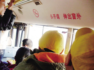 公交車上標(biāo)語提示“頭手請(qǐng)伸出窗外”,細(xì)心的乘客一看才發(fā)現(xiàn),原來標(biāo)語中的“勿”字不見了,本來警示安全的標(biāo)語,如今卻成了安全隱患。昨天,涪陵一網(wǎng)友發(fā)帖,講述涪陵一輛公交車上的雷人事。