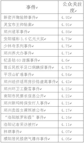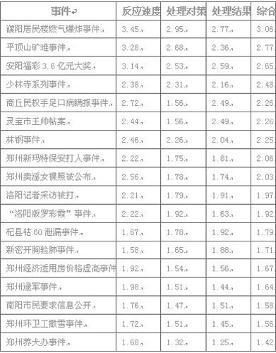 中新網(wǎng)鄭州1月11電(記者 師紅壘)2009年,河南網(wǎng)民都關(guān)心什么,重大事件的處是中,官方的應(yīng)對(duì)能力又怎樣。1月 10日,一份由某網(wǎng)站公布的河南《公共事件熱度排行榜》和《官方應(yīng)對(duì)能力排行榜》調(diào)查報(bào)告,再次引起網(wǎng)民關(guān)注。