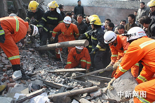 當(dāng)日下午13時(shí)14分,瑞安市消防大隊(duì)接到報(bào)警后,迅速調(diào)集公安現(xiàn)役消防隊(duì)及專職消防隊(duì)6輛消防車30名指戰(zhàn)員趕到現(xiàn)場實(shí)施救援。消防官兵到達(dá)現(xiàn)場時(shí),現(xiàn)場一片狼藉,百余平方米的房屋已成為廢墟,現(xiàn)場嘈雜聲混成一片,爆炸現(xiàn)場多處起火,火魔開始向倒塌民房蔓延,而廢墟下面有多條生命等待著救援,現(xiàn)場情況十分危急。消防官兵立即出兩支高壓水槍對火勢進(jìn)行控制,同時(shí)救援小組迅速展開營救。
