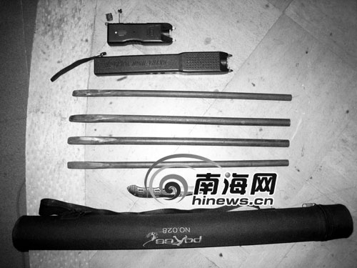 “你隨身攜帶的電棍做什么用的?還自制開鎖器?” 記者在瓊?词厮姷皆谘旱暮沃铱 :握f,電棍有電擊功能又有照明功能,攜帶電棍用來防身,如果被人發(fā)現(xiàn),他們便用電棍電擊他人,同時在作案時用來照明。
