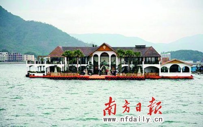 近日,深圳南澳東山灣一棟面積多達7000平方米,耗資近億元的海上別墅存在五六年之久,卻一直沒有取得海域使用權證,被指是一棟“海上違建”(見上圖)。昨天下午,該別墅主人郭奎章在其“海上皇宮”內(nèi)首次公開回應媒體,稱該別墅是省海洋部門同意的旅游試驗項目,不屬于違法建筑,也不可能拆除。