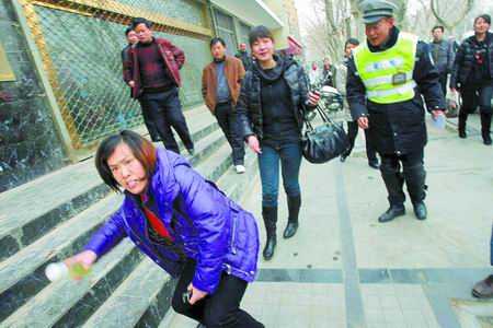 3分鐘后,交警二大隊(duì)民警趕到。在對(duì)違法司機(jī)進(jìn)行處罰時(shí),民警發(fā)現(xiàn)司機(jī)宿輝所駕駛的轎車,登記的是南陽(yáng)市社旗縣晉莊鎮(zhèn)紀(jì)律檢查委員會(huì)所屬車輛。記者拍照時(shí),遭到一名短發(fā)女子阻攔。隨后,又有兩名黑衣女子上前,開始搶奪本報(bào)攝影記者閆化莊的相機(jī),并當(dāng)街追打閆化莊,將他的手背抓爛。整個(gè)過(guò)程持續(xù)了十分鐘,一名DV觀察員拍攝追打過(guò)程時(shí),也遭到了這三名女子的圍攻和撕扯,在場(chǎng)交警上前制止,其中兩名女子又沖過(guò)來(lái)毆打記者。先期離開的特巡警趕來(lái)制止,三名女子仍不愿罷手。
