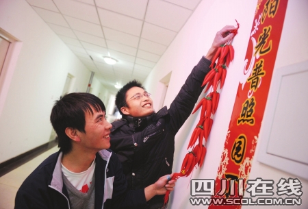 和吳波一樣,成都理工大學材料化學院今年春節(jié)就有近20名大學生留校。他們大多數(shù)來自農(nóng)村、家庭貧困,許多人的父母在沿海打工,春節(jié)的家鄉(xiāng)仍是一座空房。