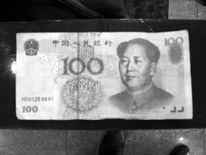 該飯店常務(wù)總經(jīng)理孫某說,結(jié)賬時,大過年的,那張假錢他們就認了,可是他們下到吧臺就開砸,把吧臺上的驗鈔機、黃色裝飾物都給推到地上摔壞了,菜單票子給扯了,盆景樹弄折了,不銹鋼垃圾桶弄癟了,合計損失近萬元。飯店方表示,要向砸飯店的顧客索賠被損壞的物品。記者看到,收銀員拿出一張HD90號碼打頭的百元假幣。
