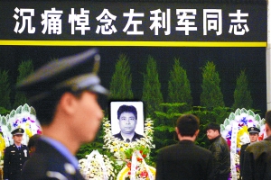 北京八寶山地區(qū)的天空似乎永遠是陰沉的,殯儀館門前也總是圍繞著送別親人的悲痛。今天(22日)上午,這種離情更加的讓人感動:北京市公安局領(lǐng)導(dǎo)班子全部出動,甘家口派出所的同事們安排好工作陸續(xù)前來,西釣魚臺社區(qū)居民聞訊自發(fā)趕到,他們都是為一個普通的社區(qū)民警送行,這是一個永遠笑瞇瞇的“小左”;這是一個質(zhì)樸而熱情的“左指導(dǎo)員”、“左師父”。3月20日的凌晨,41歲的北京海淀公安分局甘家口派出所社區(qū)民警左利軍猝死在派出所,今天上午,小左的遺體告別在八寶山舉行。