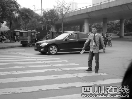 昨日是小長假第一天,雙橋路的車流量并不多,但這個(gè)小伙子卻在二環(huán)路口忙了一天,他比劃著夸張的交警手勢,指揮著交通,看見過馬路的老人和小孩還會(huì)上去扶一把。