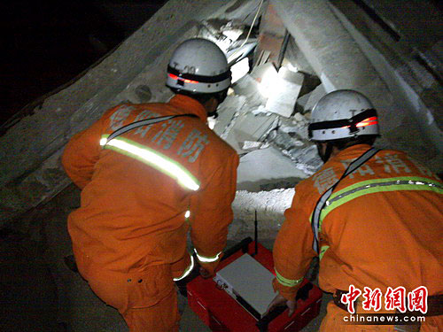 4月15日,玉樹縣結(jié)古鎮(zhèn)氣象賓館旁的民房,肖國平和白云飛的視頻生命探測儀發(fā)揮了作用。據(jù)群眾反應(yīng),這里有被埋人員,肖國平與白云飛立即就沖了上去。這幢民房整體坍塌,他們在廢墟里仔細(xì)探尋,殘?jiān)珨啾诼冻龅蔫F釘、鋼筋、瓦礫讓他們行動(dòng)困難,臉劃破了全然不顧。然而一分一秒過去了,儀器上遲遲沒有發(fā)現(xiàn)生命跡象,但他們沒有放棄,繼續(xù)將視頻探頭深入廢墟中,最終在一個(gè)倒塌的墻體下發(fā)現(xiàn)疑似人體的跡象。