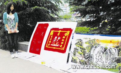 4月22日下午,在武漢光谷廣場(chǎng)的空地上,一名擺攤賣十字繡的美女大學(xué)生引起路人的關(guān)注。她在吆喝賣她的嫁妝,理由是為玉樹(shù)災(zāi)區(qū)獻(xiàn)愛(ài)心,不過(guò)一幅十字繡堅(jiān)持賣3.8萬(wàn)元,讓感興趣的人聽(tīng)完直感慨,“這也太貴了吧。”