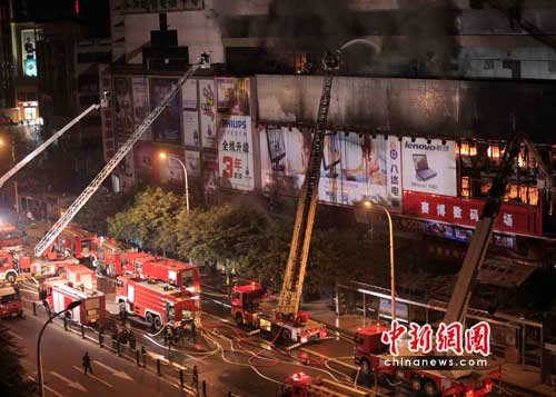 零時20分,賽博數碼廣場突發(fā)火災時,正在執(zhí)勤的交巡民警高興勇、游石剛突見大樓內煙霧彌漫,火光沖天,通過無線對講在第一時間向分局指揮室報告了電腦城發(fā)生火災的情況。隨后,他倆與平臺協(xié)勤隊員一起,趕赴現場疏導群眾,救助傷者。同時,及時對通往火災中心地點賽博電腦城的渝州路和石新路車站實行交通管控,確保救援車輛暢通、順利趕赴火災現場。