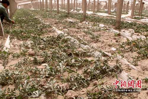 四月下旬正值吐魯番地區(qū)葡萄、哈密瓜等幼苗生長(zhǎng)季節(jié)。新疆農(nóng)業(yè)廳說,這次大風(fēng)災(zāi)害使全吐魯番地區(qū)春季作物遭受到“毀滅性打擊”。按照吐魯番地區(qū)葡萄年均種植面積45萬(wàn)畝測(cè)算,這意味著有一半以上的葡萄種植基地受災(zāi)。