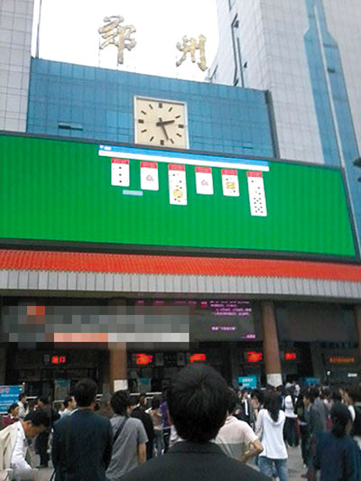 5月16日,鄭州火車站本該顯示車站公告的戶外超大顯示屏上,卻出現(xiàn)了紙牌游戲(見(jiàn)圖),共耗時(shí)20來(lái)分鐘,游戲過(guò)關(guān)后,綠色屏幕上煙花襯著“你贏了”三字。鄭州火車站表示當(dāng)時(shí)打牌的人不是火車站的工作人員,是施工方的。據(jù)瀟湘晨報(bào)報(bào)道,昨晚,河南本地一公司宣稱對(duì)此事負(fù)責(zé)并致歉。