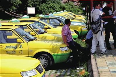 24日下午,東莞虎門威遠(yuǎn)炮臺附近的一處空曠停車場,數(shù)十輛“黃的”整齊地停放在一起。的哥老黃接受采訪時(shí)說,他們是東莞市公共的士有限公司的司機(jī),全公司在虎門營運(yùn)的車輛約有200輛,當(dāng)天全部閑放在虎門空曠地帶“趴窩”。原因是,從18日開始,虎門交通分局派出幾名社會人士充當(dāng)稽查人員,對出租車進(jìn)行明察暗訪,幾天內(nèi),東莞公共的士有限公司因不打表被罰的車輛就達(dá)30多輛!昂芏喽际潜蝗苏T導(dǎo)才沒有打表的!彼緳C(jī)們認(rèn)為,交通部門此“暗訪”其實(shí)就是“釣魚”執(zhí)法。24日下午,東莞市交通局虎門分局門口擠滿了前去辦理處罰手續(xù)的出租車司機(jī)。