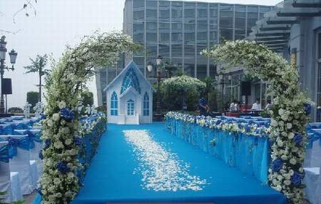 16午12時,在某大酒店,一個微縮版的水晶教堂,擺上了婚禮舞臺。婚禮承辦方負(fù)責(zé)人馬先生說,婚禮的布景,花了20多萬元。