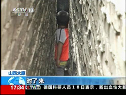 實(shí)拍:5歲男孩被卡墻縫 消防緊急救援