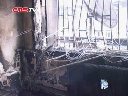 【解說(shuō)詞】事發(fā)現(xiàn)場(chǎng)中巴車(chē)冒著火,像一個(gè)巨大的火球。大量黑煙冒出。接到報(bào)警后,消防隊(duì)員趕到現(xiàn)場(chǎng),很快就將大火撲滅。記者在現(xiàn)場(chǎng)看到車(chē)輛已被燒得面目全非。在最后一排座位上還有一具被燒焦的尸體。