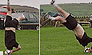 空翻本來就危險,越過一個人落地就更危險了,這位空翻者成功翻越后落一墊子立即產(chǎn)生強(qiáng)大“氣場”,此“氣場”卻是墊子自己發(fā)出的,襯托了主角!