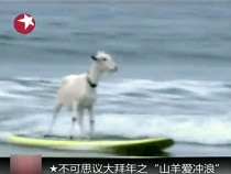 高手山羊愛沖浪 能翻越數(shù)個浪潮