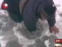 另類捕魚 直接把手臂伸進冰窟窿當(dāng)魚鉤