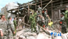 實拍記者官兵冒山體滑坡風險步行進入靈關(guān)鎮(zhèn)