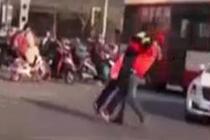 女子強穿馬路不聽勸阻 志愿者“熊抱”送回