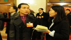 【解說(shuō)】參加十二屆全國(guó)人大一次會(huì)議的廣東省代表團(tuán)2日傍晚抵達(dá)北京。廣東團(tuán)代表抵達(dá)入住的首都大酒店后,迅即被等待已久的各路媒體包圍,然而,大多數(shù)代表匆匆而行,對(duì)記者的提問(wèn)一笑置之,人群中也難覓農(nóng)民工代表和騰訊董事會(huì)主席兼首席執(zhí)行官馬化騰、珠海金山軟件董事長(zhǎng)雷軍的身影。