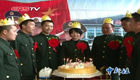 【解說(shuō)】已經(jīng)堅(jiān)守除污崗位3天的一位姓胡的工人師傅一邊吃著飯一邊對(duì)記者說(shuō),今天已經(jīng)輕松了好多,中午飯至少能正常吃。