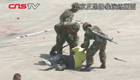 5月29日北京舉行反恐防暴綜合實(shí)戰(zhàn)演練。大量人員在北京某廣場(chǎng)聚集,進(jìn)行非法聚集滋事活動(dòng)。在個(gè)別人的煽動(dòng)下,有暴徒用磚塊、木棍和燃燒瓶攻擊特警隊(duì)員,圍堵打砸小轎車和公交車輛。特警和武警等相關(guān)專業(yè)力量相互配合,采取強(qiáng)制措施和相應(yīng)的戰(zhàn)術(shù)手段,對(duì)10余名頑固鬧事暴徒進(jìn)行圍攻和抓捕,并對(duì)圍觀人員進(jìn)行驅(qū)散。