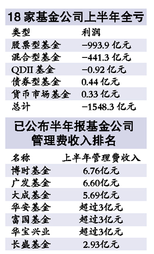 18家基金公司旗下234只基金的半年報面世,基金業(yè)利益鏈昭然若揭:今年上半年,已披露半年報的基金共計虧掉基民1548億元,但基金公司管理費收入不減反增,半年大賺51.13億元, 比去年同期多收了16.01%;基金銷售渠道更是坐收漁利,上述基金上半年共計支出客戶管理費高達7.04億元,同比增長了13.28%。