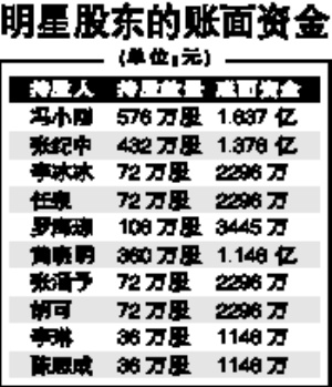 自2009年10月30日在創(chuàng)業(yè)板上市以來,華誼兄弟上市后也足歲了,并于上周末“解禁”(按規(guī)定,股東在公司上市12個月之后才能出售股票)。由于其背后隱藏著馮小剛、黃曉明、李冰冰、羅海瓊、任泉等多位明星股東,而如今的股價已漲至當初他們買原始股時價格的幾十倍,因此這些明星持股人是否會拋售股票套現(xiàn),成了大家關注的焦點。昨日是“解禁”后的首個交易日,記者了解后發(fā)現(xiàn),不少明星都未著急套現(xiàn)。