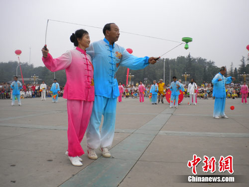 河北保定“千人同時同地抖空竹”倡全民健身