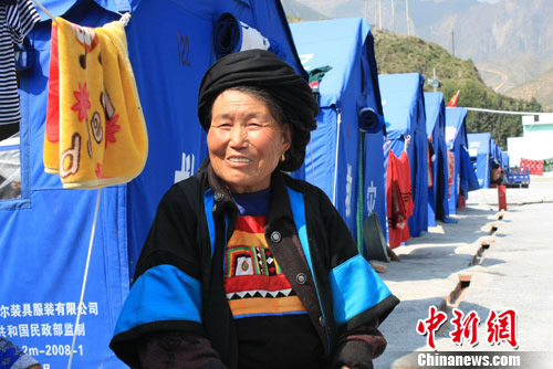 19日下午,70歲的藏族老阿媽才讓卓瑪坐在舟曲災(zāi)后安置點(diǎn)的帳篷門(mén)口和鄰居聊天。她家在縣城的南濱河路上,泥石流發(fā)生的那天晚上,他們一家人有驚無(wú)險(xiǎn)的從家里跑了出來(lái)。才讓卓瑪對(duì)安置點(diǎn)條件比較滿(mǎn)意,她說(shuō),每家每戶(hù)都有單獨(dú)的帳篷住,還有電視看,“住得很安心”。侯志雄 攝