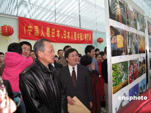 2009年1月28日,中國(guó)駐日本大使崔天凱和在此歡度春節(jié)的一百多名中國(guó)留學(xué)生觀看了“中國(guó)人看日本,日本人看中國(guó)”。該攝影展由全日本中國(guó)留學(xué)人員友好聯(lián)誼會(huì)主辦,春節(jié)期間在日本富士山畔的富士急Highland藝術(shù)廳舉行。中新社發(fā) 段躍中 攝