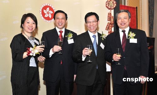 當(dāng)?shù)貢r間2月4日,香港駐紐約經(jīng)貿(mào)辦事處在華爾道夫酒店舉行新春招待會,中國常駐聯(lián)合國代表張業(yè)遂大使,中國駐紐約總領(lǐng)事彭克玉等四百多位來賓出席了招待會,香港特區(qū)駐美國總經(jīng)貿(mào)專員唐智強發(fā)表講話,香港駐紐約經(jīng)貿(mào)辦事處處長陳美嘉致新春賀詞。中新社發(fā) 龔文謨 攝