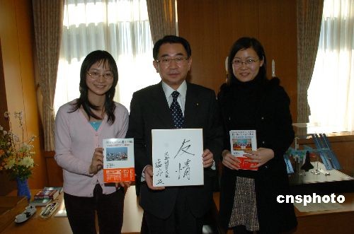 2月6日中午,日本文部科學(xué)大臣鹽谷立在東京大臣辦公室親切接見了第四屆中國(guó)人日語(yǔ)征文大賽主辦單位日本僑報(bào)社代表和兩名最優(yōu)秀獎(jiǎng)獲獎(jiǎng)?wù)摺本┐髮W(xué)日語(yǔ)系研究生徐蓓和湘潭大學(xué)青年教師張桐赫。鹽谷立大臣高度評(píng)價(jià)中國(guó)人日語(yǔ)征文大賽,為促進(jìn)日中兩國(guó)人民的相互理解起了積極的作用,勉勵(lì)獲獎(jiǎng)?wù)呃^續(xù)努力,為日中交流作出更大貢獻(xiàn)。鹽谷立為中國(guó)青少年題寫了“友情”二字,期待日中兩國(guó)青少年世代友好。圖為鹽谷立接受徐蓓和張桐赫贈(zèng)送獲獎(jiǎng)作品集《我認(rèn)識(shí)的日本人》。中新社發(fā) 段躍中 攝