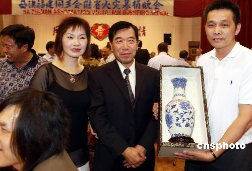 2009年2月15日,西澳中華會(huì)館文化中心,三百多位來(lái)自13個(gè)華人社團(tuán)的各界華人聚集一堂,舉辦“風(fēng)火無(wú)情人間有情”募捐晚會(huì),為澳大利亞維多利亞州遭受2月7日起發(fā)生的嚴(yán)重山火災(zāi)害的災(zāi)民募捐。中國(guó)駐澳大利亞珀斯總領(lǐng)館李樹(shù)鋼總領(lǐng)事、西澳洲議長(zhǎng)邁克沙德蘭、珀斯市議員劉怡心、捷拉等官員到場(chǎng)支持。中新社發(fā) 高周丹 攝