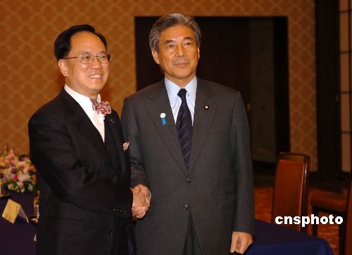 2月16日,香港特別行政區(qū)行政長(zhǎng)官曾蔭權(quán)開始對(duì)日本的正式訪問。這是他就任特首以來首次訪日,受到日本政經(jīng)各界的歡迎。圖為16日傍晚,曾蔭權(quán)在東京與日本外相中曾根弘文舉行會(huì)談。中新社發(fā) 朱沿華 攝