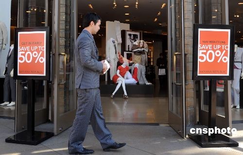 周日原本是商場人氣最旺的時候,洛杉磯市區(qū)的一家中高檔服裝店打出“最高打五折”的告示,店員在門口發(fā)放優(yōu)惠券,但店內(nèi)顧客依舊寥寥。受金融危機(jī)影響,全美失業(yè)率突破百分之八,消費(fèi)者信心大受打擊,中高檔商品經(jīng)營者首當(dāng)其沖。中新社發(fā) 張煒 攝