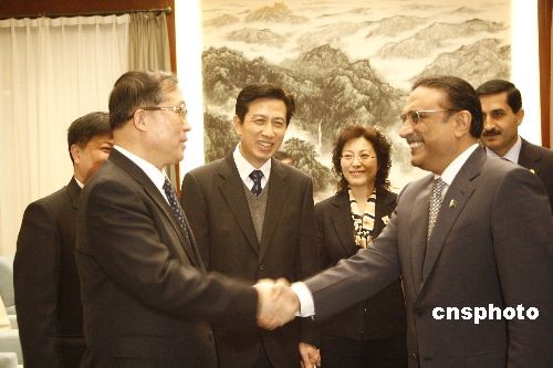 1月20日至23日,巴基斯坦總統(tǒng)扎爾達(dá)里將先后訪問湖北和上海,考察中國水利、農(nóng)業(yè)、金融等領(lǐng)域發(fā)展情況。圖為湖北省省長李鴻忠會(huì)見扎爾達(dá)里總統(tǒng)。中新社發(fā) 艾啟平 攝