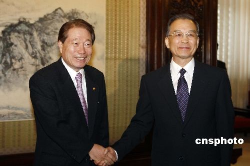 2月24日,中國國務(wù)院總理溫家寶在北京中南海紫光閣會(huì)見韓國外交通商部長官柳明桓。中新社發(fā) 盛佳鵬 攝