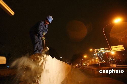 3月20日23時左右,長安街道路大修工程正式啟動。據(jù)悉,這是十余年來長安街首次大修,預計8月30日完工。伴隨此次道路大修,將同步進行交通工程、綠化整治和公交優(yōu)化,并對建國門立交橋進行橋面翻新和結構加固,對沿線多處地下通道出入口進行延長調(diào)整,實現(xiàn)長安街復興門至建國門路段五上五下雙向十車道的規(guī)劃。為最大限度減少施工對城市交通及市民的影響,施工主要集中在夜間進行,白天交通不受影響。中新社發(fā) 富田 攝