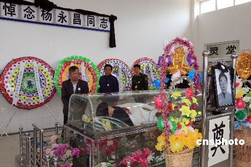 4月22日,“雪龍?zhí)枴睒O地科考船失事直升機(jī)失蹤機(jī)組人員楊永昌追悼會(huì)在上海長興島殯儀館舉行,與楊永昌生前一同到極地從事科考的隊(duì)友專程為楊永昌送行。4月12日,“雪龍?zhí)枴睒O地科考船租用的艦載直升機(jī)在完成科考任務(wù)后返回駐地時(shí)失事墜海。4名機(jī)組人員隨機(jī)落水,其中3人獲救。4月20日,經(jīng)過近8天的搜尋,失蹤機(jī)組人員楊永昌的遺體在長江口水域振華港機(jī)0號(hào)碼頭附近被發(fā)現(xiàn)并打撈上岸。中新社發(fā) 潘索菲 攝