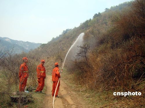4月28日14時30分左右,位于山西呂梁交城關(guān)帝山林區(qū)的雙家寨發(fā)生森林火災(zāi),火場位于會立鄉(xiāng)翟家莊村西面的薛池溝內(nèi),距離龐泉溝自然保護區(qū)僅30公里。截至30日下午17時,火災(zāi)救援仍在緊張進行,火災(zāi)面積仍在統(tǒng)計中,目前沒有傷亡人員,火災(zāi)原因仍在調(diào)查中。目前當(dāng)?shù)卣颜{(diào)集2000余人全部投入救火,其中武警部隊500多人、森林消防部隊及森林警察300多人以及縣里組織的民眾1000余人。救援隊伍用幾百米水管和自帶發(fā)電機山溝抽水滅火。此外,呂梁市氣象局還準(zhǔn)備運行炮彈助雨設(shè)備進行救援。經(jīng)過近兩天兩夜的撲救工作,30上午翟家莊村道灰溝,青年溝的火災(zāi)基本控制。 中新社發(fā) 高增平 攝